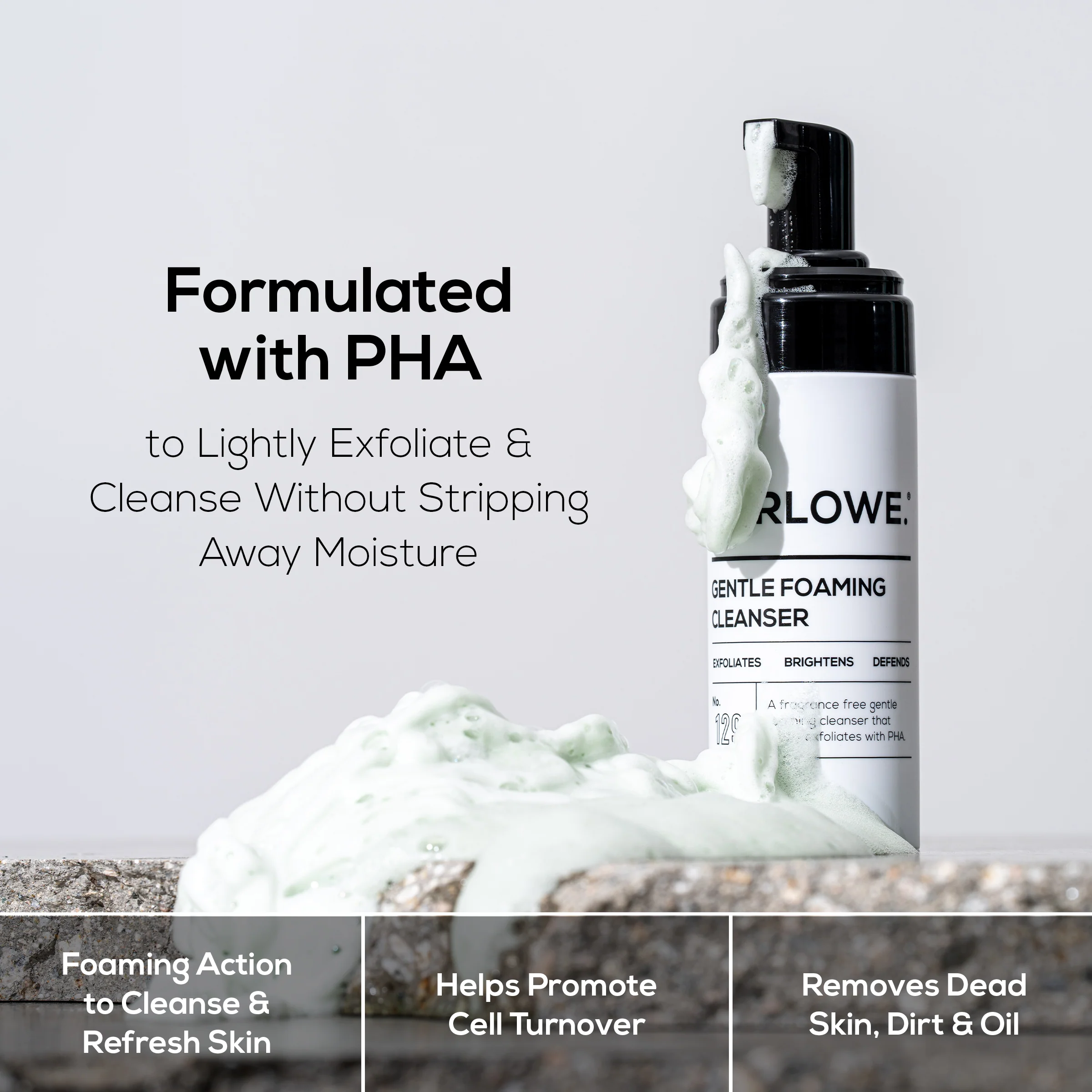 - Lightweight Foaming Cleanser – Non-stripping formula built for everyday use, AM + PM.
